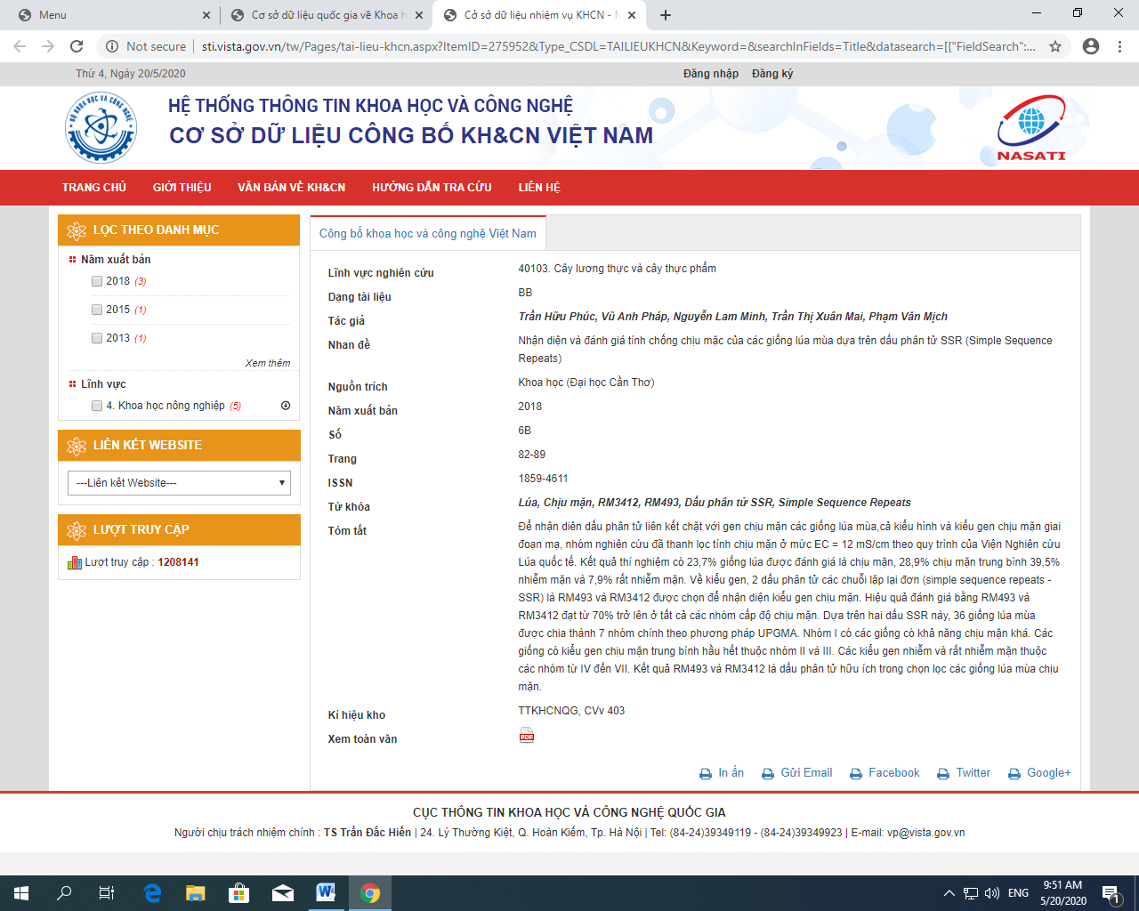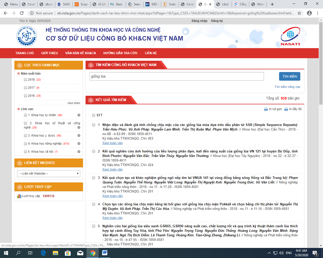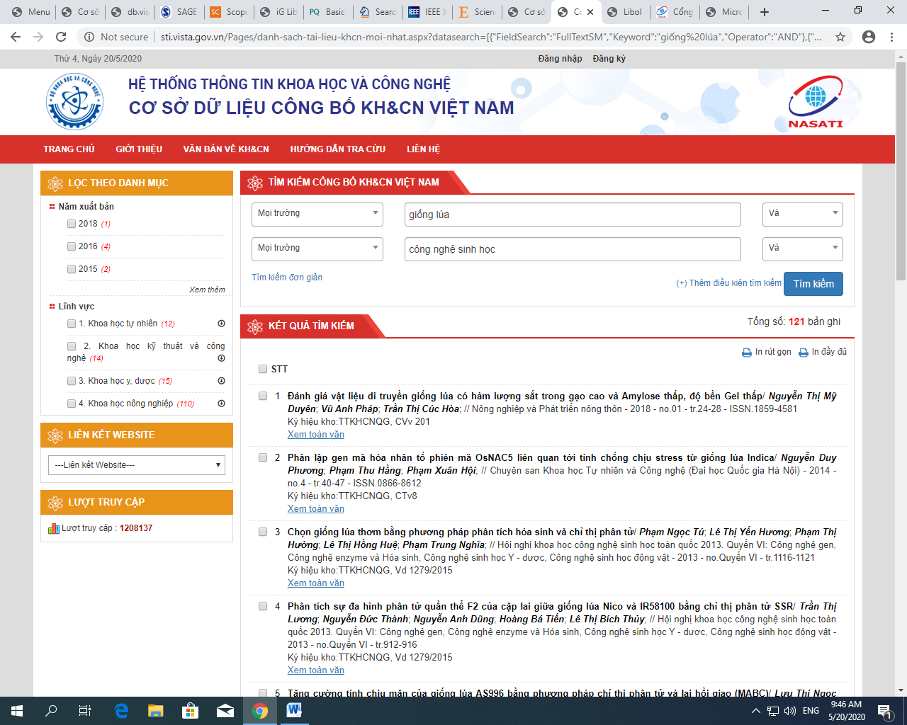 Để phục vụ công tác nghiên cứu và đào tạo, Thư viện KH&CN quốc gia xin giới thiệu đến bạn cơ sở dữ liệu Tài liệu Khoa học và Công nghệ Việt Nam (STD)