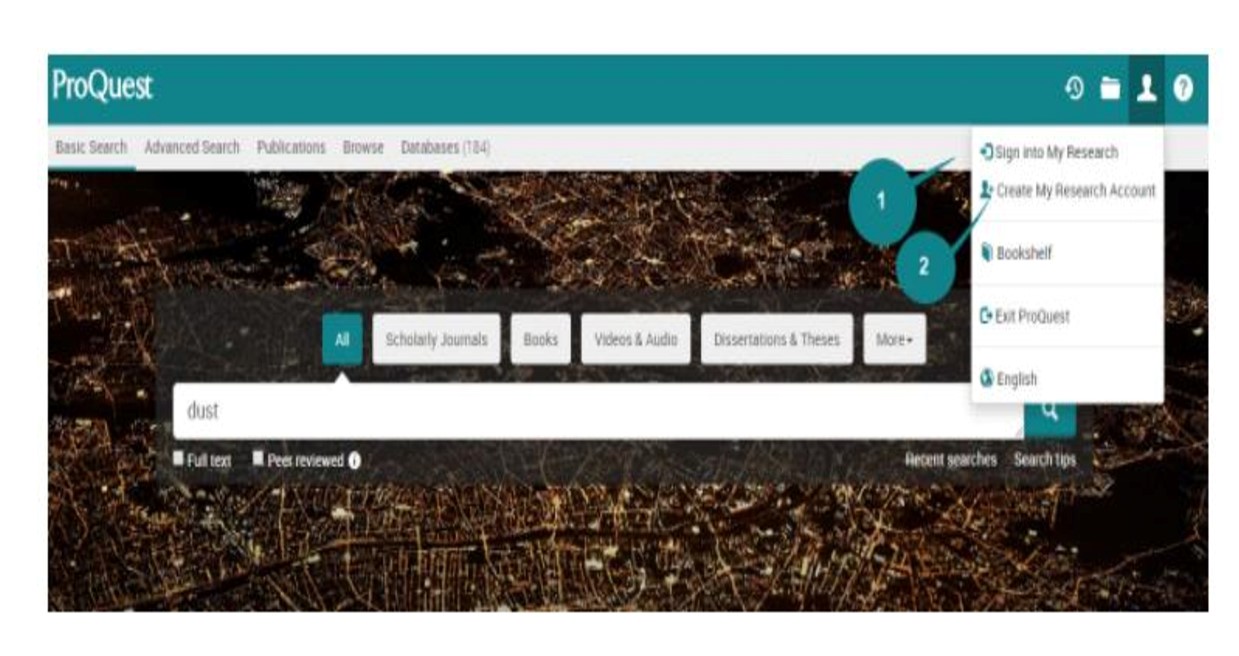Đây là một công cụ mà bạn có thể sử dụng để lưu, quản lý và sắp xếp nội dung cũng như các tài liệu hỗ trợ mà bạn tìm và tạo trong ProQuest. Thiết lập tài khoản cá nhân rất đơn giản và miễn phí cho tất cả người dùng ProQuest.